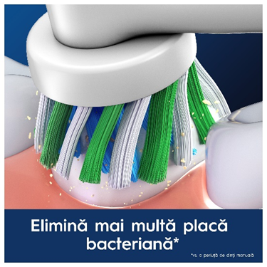 Capetele de periaj Oral-B au peri in forma de X care s-a dovedit clinic ca se adapteaza si ajung pe toate suprafetele dintilor, indepartand placa bacteriana pe care perii obisnuiti nu o pot atinge pentru o curatare mai buna si eficienta. |