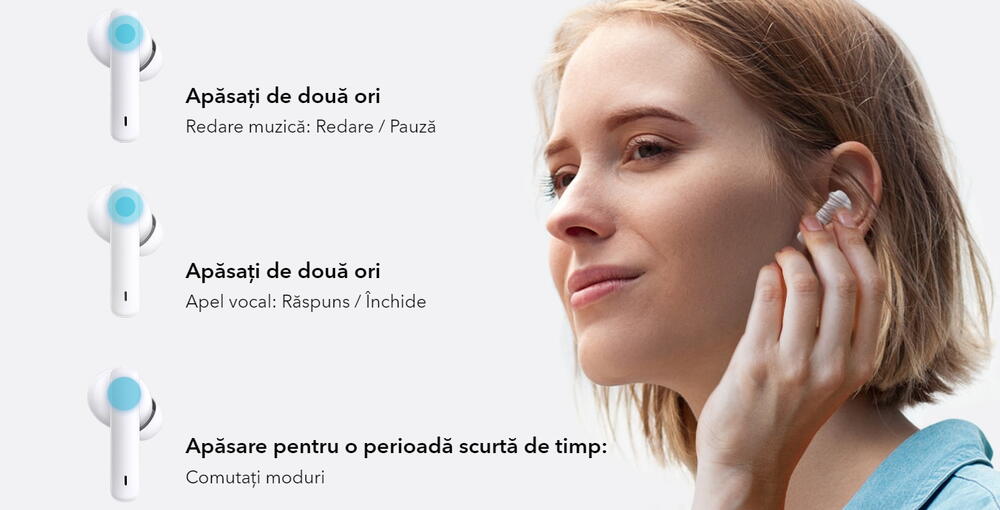 Activati cu usurinta „modul de constientizare” tinand apasat pe casca. Fara a scoate castile, puteti auzi sunetul ambiental, facand comunicarea fata in fata mai confortabila si mai placuta.