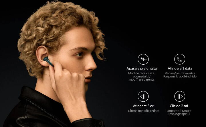 Castile audio fara fir dispun de tehnologia inteligenta de reducere a zgomotului True Wireless Smart Noise Reduction pana la 40 dB. Ai la dipozitie 3 moduri de reducere a zgomotului ambiental: reducere profunda daca te deplasezi pe un bulevard aglomerat, echilibrata sau usoara, daca te afli la birou sau la bilblioteca. Calitatea sunetului este excelenta folosing tehnologia HIFI si Tuningul profesional HRTF.
