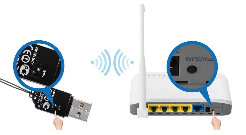 | Buton de configurare protejata Wi-Fi (WPS) EW-7811UTC este prevazut cu un buton de configurare protejata Wi-Fi (WPS), pentru a va ajuta sa configurati si sa activati rapid reteaua wireless. | ||