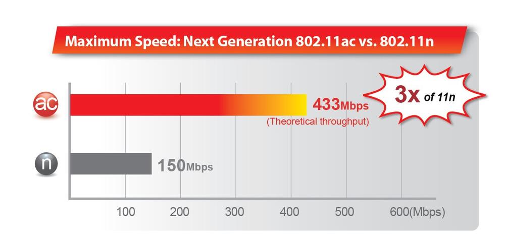 | Conectivitate dual-band Bucurati-va de o performanta mai buna si de o flexibilitate mai mare pentru dispozitivele Wi-Fi, folosind conectivitatea dual-band. EW-7811UTC ofera conectivitate pentru banda de 2,4GHz la viteze de 150Mbps sau in banda de 5Ghz la viteze de 433Mbps. Puteti naviga pe internet si va puteti verifica email-ul in banda de 2,4GHz sau puteti selecta banda de 5GHz pentru jocuri online si pentru streaming video. | ||