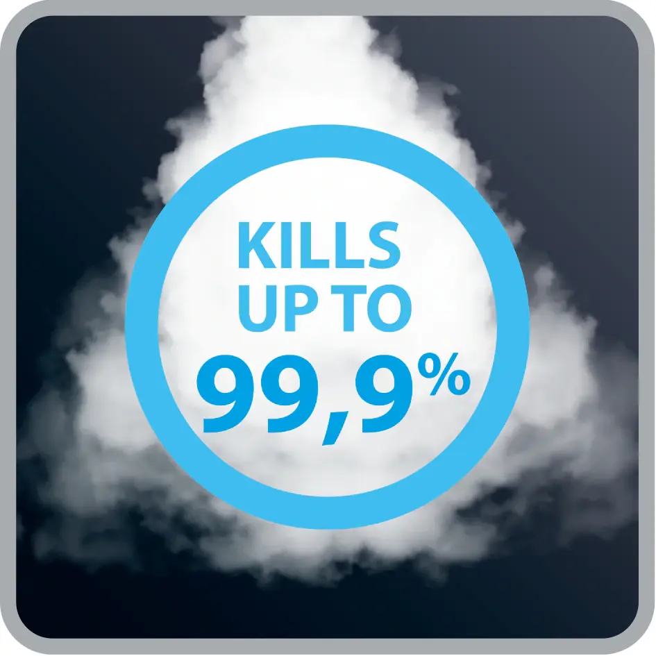 | Igienizare fara detergenti Aburul puternic omoara pana la 99,9% dintre bacterii, igienizand astfel locuinta fara detergenti sau chimicale. |