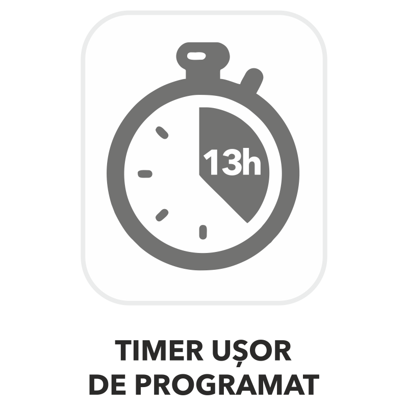 | Timer usor de programat – bucura-te in fiecare dimineata de mirosul painii proaspete! Poti seta timer-ul cu pana la 13 ore inainte, iar masina de paine va prepara si va coace painea in timp ce dormi. | ![]() |