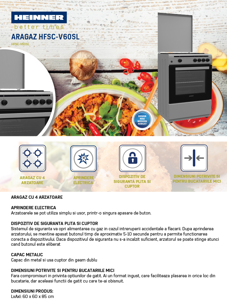 Opiniile clientilor despre Aragaz Gaz Heinner HFSC-V60SL, 60x60cm, 4 arzatoare, Aprindere electrica plita, Culoare: Argintiu