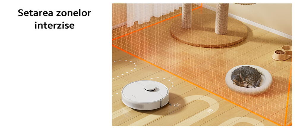 Creeaza bariere virtuale in aplicatie pentru a te asigura ca aspiratorul robot nu va intra niciodata in zonele respective. Aceasta optiune ajuta aspiratorul sa evite ariile potential periculoase, cum ar fi baile.