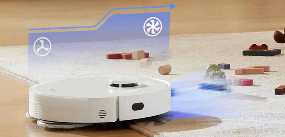 Functia Smart Suction Boost ajusteaza automat puterea de aspirare pentru a-ti curata eficient carpetele. Iar pentru protejarea covoarelor, este recomandata configurarea robotului pentru a sa evita tesaturile cu fir mediu si lung prin intermediul aplicatiei Dreamehome.