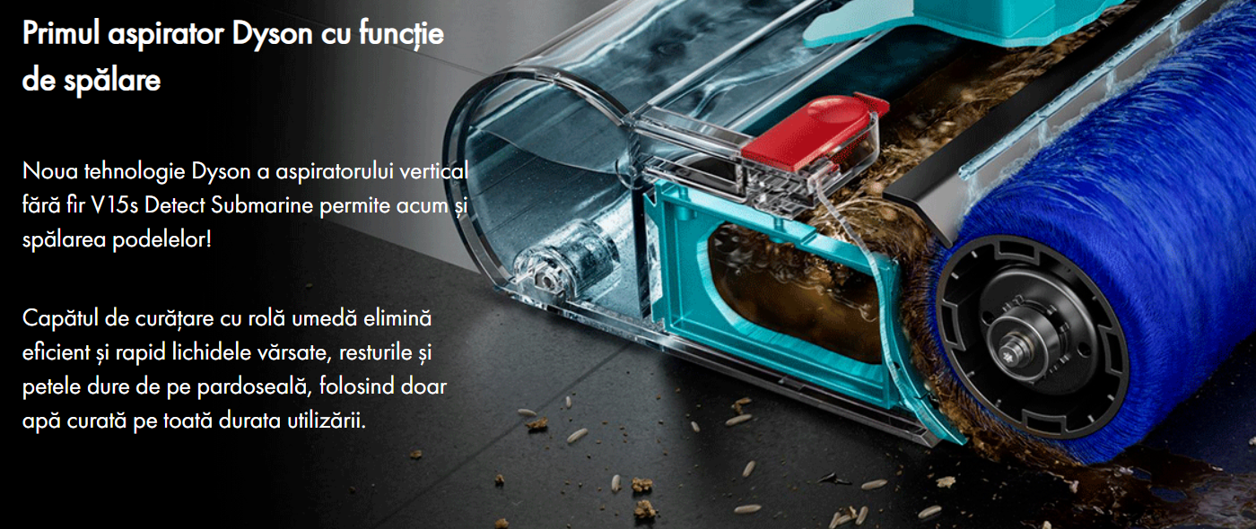 ![]() | Adio murdărie în bucătărieAspiratorul V15s Detect Submarine este ușor de manevrat printre obstacole, astfel că îl poți folosi atunci când ai nevoie să cureți mâncarea sau băuturile ajunse pe podea. |