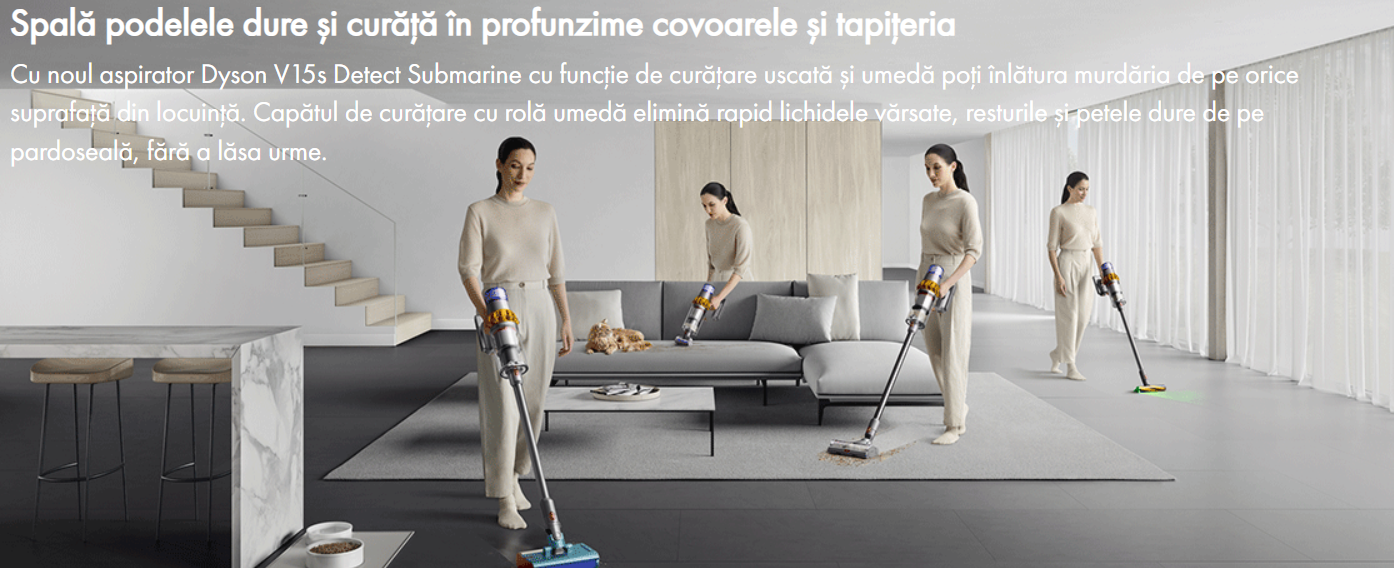 ![]() | Cureți eficient orice suprafață din locuințăNoul aspirator fără fir de la Dyson vine cu 6 accesorii de curățare pentru ca tu să poți curăța orice suprafață din locuința ta, de la podele și covoare, până la locurile greu accesibile. |
