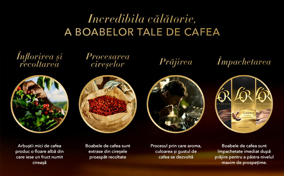 Savureaza cafeaua boabe L'OR Crema Absolu Classique, o aroma delicata si un gust echilibrat. Acorda-ti sansa de a trai o experienta unica, marcata de aroma delicata a boabelor de cafea, prajite cu maiestrie. Acestea asigura gustul suav si aromat al unei bauturi desavarsite.