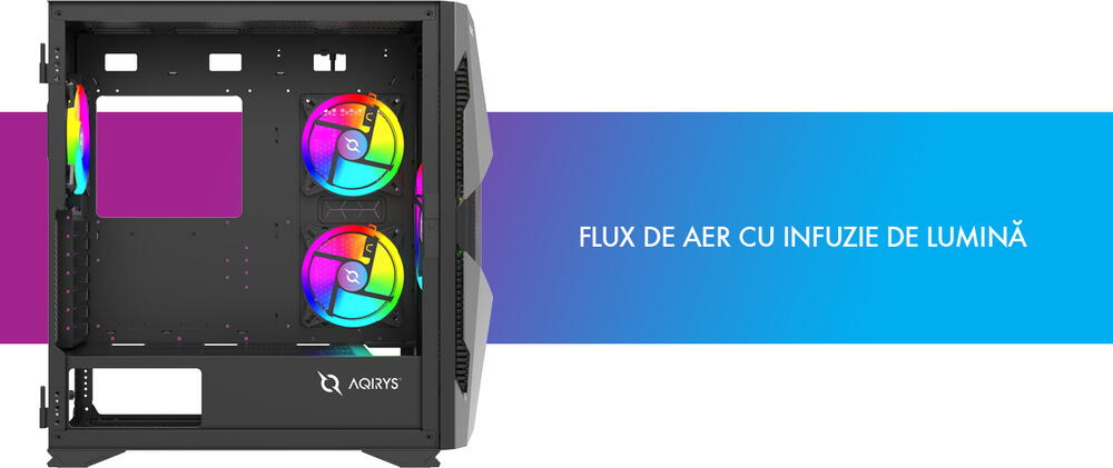 • include patru ventilatoare iluminate ARGB (fara suport PWM) - 140 mm frontal, 120 mm lateral si spate