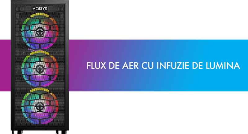 Numită după cea mai strălucitoare stea din constelația Boötes și una dintre cele mai strălucitoare stele care se pot vedea de pe Pământ, carcasa ARCTURUS include multiple facilități, oferind condițiile ideale pentru a-ți modela și crea propriul univers de gaming în jurul unui PC impresionant! Panoul lateral fabricat integral din sticlă securizată de culoare gri deschis, oferă o vedere completă, dar misterioasă, a interiorului platformei tale de gaming, iar cele trei ventilatoare RGB din spatele panoului frontal metalic tip mesh adaugă o notă de dramă în mix
