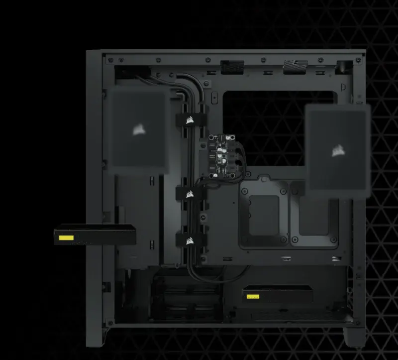Echipat cu doua ventilatoare CORSAIR AirGuide de 120 mm, utilizand palete anti-vortex pentru a concentra fluxul de aer si a imbunatati racirea.