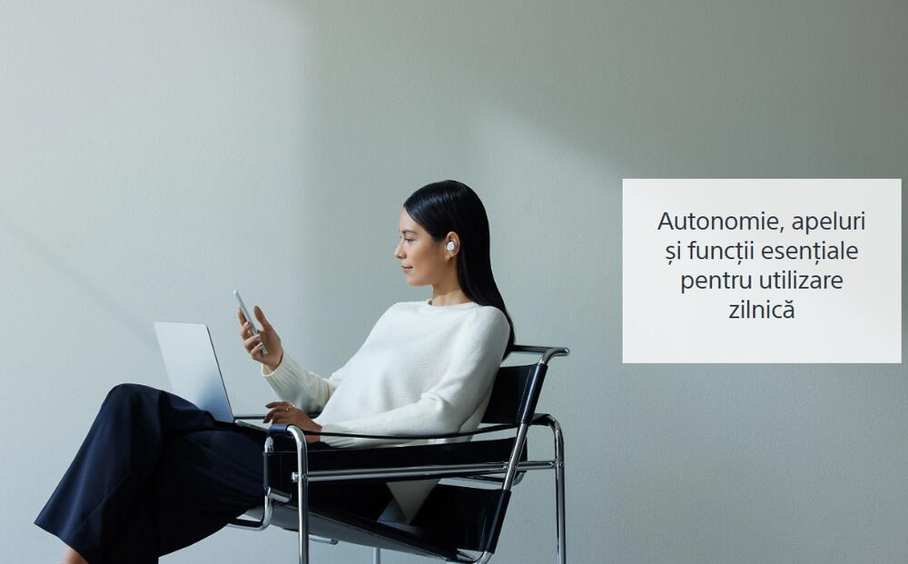 | Numeroase moduri de utilizare Indiferent daca ascultati muzica, participati la un curs online sau lucrati de acasa, castile WF-C710N va vor oferi cu sunet de inalta calitate. | ![]() |