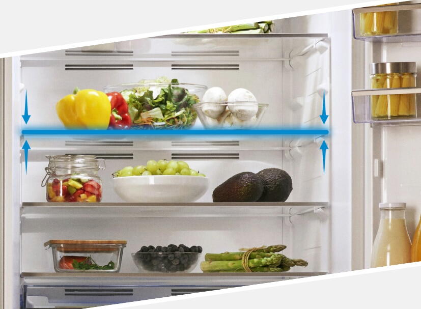 Rafturile pozitionate pe usa aparatului frigorific te ajuta sa-ti organizezi alimentele si bauturile intr-un mod ergonomic, astfel incat sa le poti accesa cu usurinta.