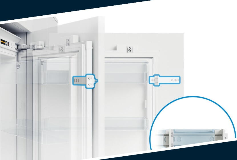 Directia in care se deschid usile frigiderului poate fi schimbata, in functie de restrictiile spatiului. Usile pot fi montate in partea stanga sau in dreapta datorita designului inovativ si a balamalelor laterale suplimentare.