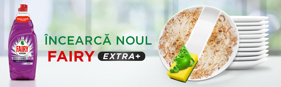 Spalarea cu Fairy Extra+ iti ofera o curatare rapida si eficienta, mai rapida decat folosind alte produse similare. Formula puternica distruge cu usurinta straturile de grasime si urmele de mancare arsa, oferindu-ti mai mult timp pentru a face lucrurile pe care le iubesti.