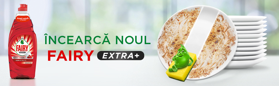 Spalarea cu Fairy Extra+ iti ofera o curatare rapida si eficienta, mai rapida decat folosind alte produse similare. Formula puternica distruge cu usurinta straturile de grasime si urmele de mancare arsa, oferindu-ti mai mult timp pentru a face lucrurile pe care le iubesti.