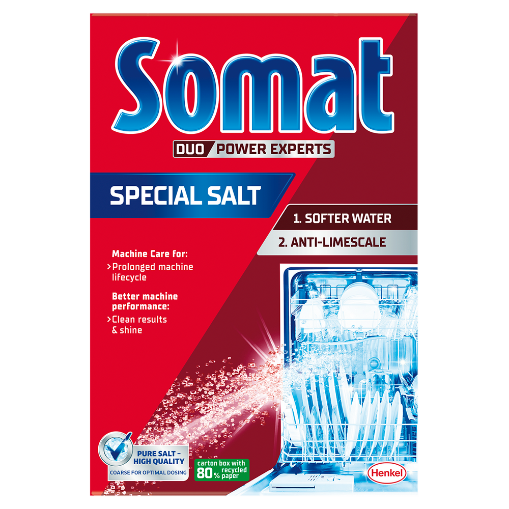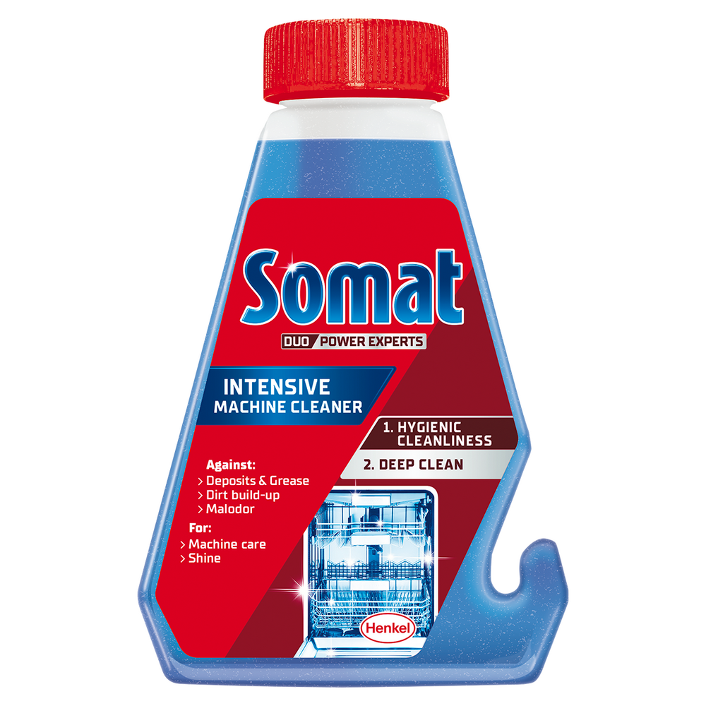 Somat capsule pentru curatarea masinii de spalat vase are in compozitia sa o formula puternica si imbunatatita care curata grasimea, reda stralucirea masinii de spalat vase, elimina mirosurile neplacute si depunerile de murdarie. Formula inovatoare a capsulelor Somat nu doar curata masina de spalat ci si protejeaza impotriva depunerilor de calcar, ajutand la mentinerea masinii de spalat vase in cea mai buna stare. Capsulele sunt usor de folosit, o data pe luna se adauga o capsula la baza masinii de spalat vase, apoi se adauga detergentul de vase Somat si se porneste ciclul de spalare la programul dorit.