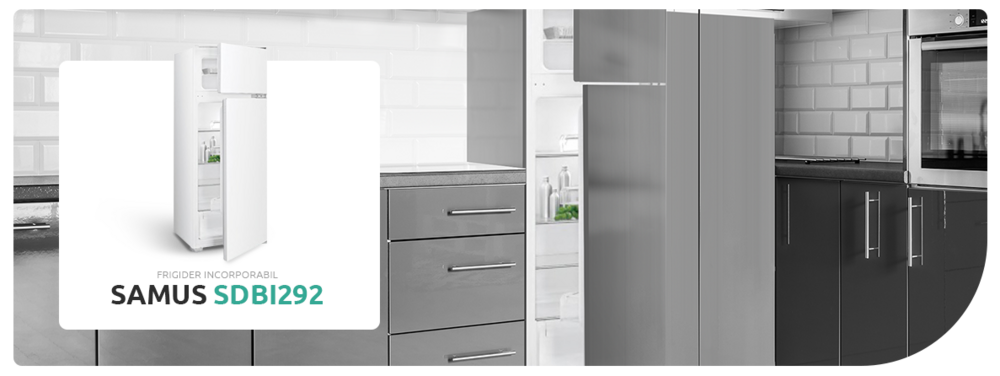 Albă? Roșie? Mov? Neagră? Galbenă? Combina frigorifică Samus SDBI292 poate fi ce culoare dorești! Fii propriul designer al aparatului tău frigorific! Frigiderul-răcitor Samus poate fi încorporată în mobila ta de bucătărie, adaptându-se instant la decorul din camera respectivă. Astfel, te bucuri de avantajele unui aparat performant cu un design propriu!