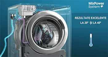 Mix Power System este sistemul unic dezvoltat de Candy care injecteaza o solutie de apa amestecata cu detergent direct in tesatura hainelor ceea ce aduce urmatoarele beneficii: spalare a rufelor mai eficienta, timp mai scurt de spalare, economie la energie. Aceasta functie iti permite sa obtii rezultate excelente de spalare chiar si la o temperatura de 20ºC.