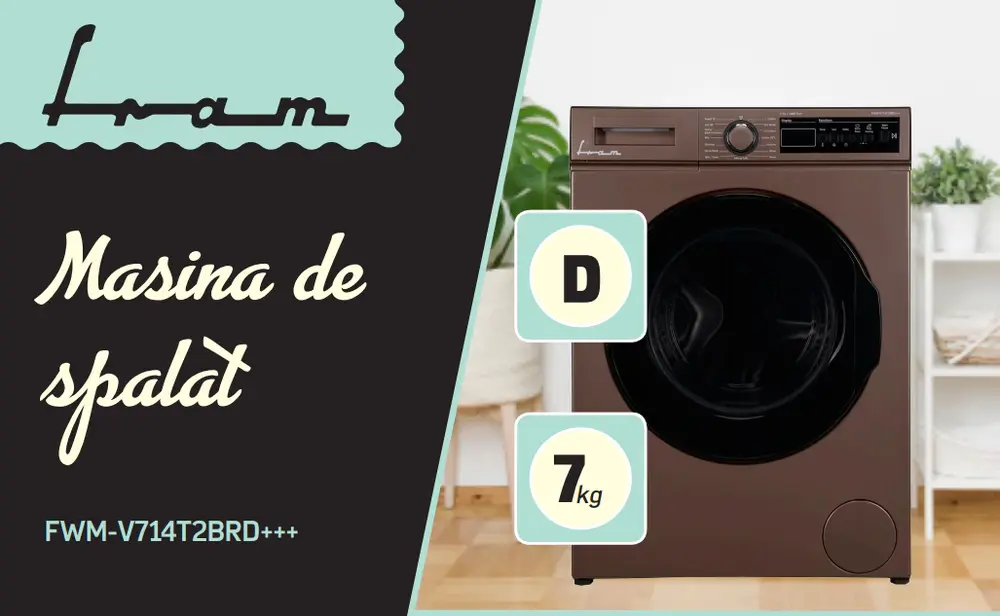 Opiniile clientilor despre Masina de spalat rufe Fram FWM-V714T2BRD+++, 7 kg, 1400 rpm, Clasa D, Display digital, Allergy safe, Start intarziat, Anti-sifonare, Eco-Logic, Cafeniu pastelat