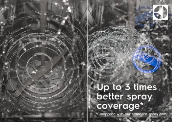 Vasele vor fi spalate perfect cu SatelliteClean, avand performante de pana la trei ori mai bune decat standardul. Datorita bratului cu rotatie dubla si a schimbarilor permanente ale unghiului de pulverizare, chiar si articolele voluminoase sunt complet spalate.