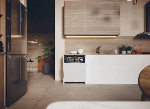 Masina de spalat vase incorporabila Haier I-Pro Shine Series 4 XS 6B1M3PB, 16 seturi, 10 programe, Clasa B, Motor Inverter, Wi-Fi, AI program, H-arm spray, Maxi Tub, Automatic open door, Aqua Stop, Lumina interna, Sliding door, 60 cm