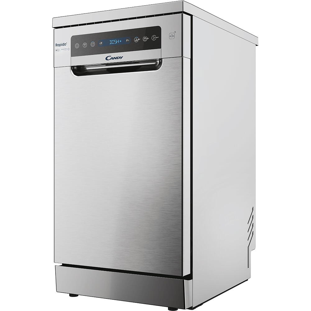 Masina de spalat vase Candy Rapido CF0C7SB0FX, Clasa C, Motor Inverter, 10 seturi, 8 programe, Conectivitate WiFi/ hOn app, Wash & Dry 35’, Automatic Open Door, 45 cm (slim), inox