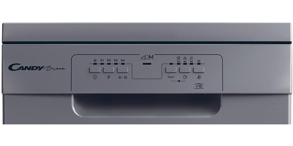 Masina de spalat vase Candy are o capacitate maxima de incarcare de pana la 10 seturi. La sfarsitul programului ales un semnal sonor te avertizeaza ca ciclul de spalare este gata.