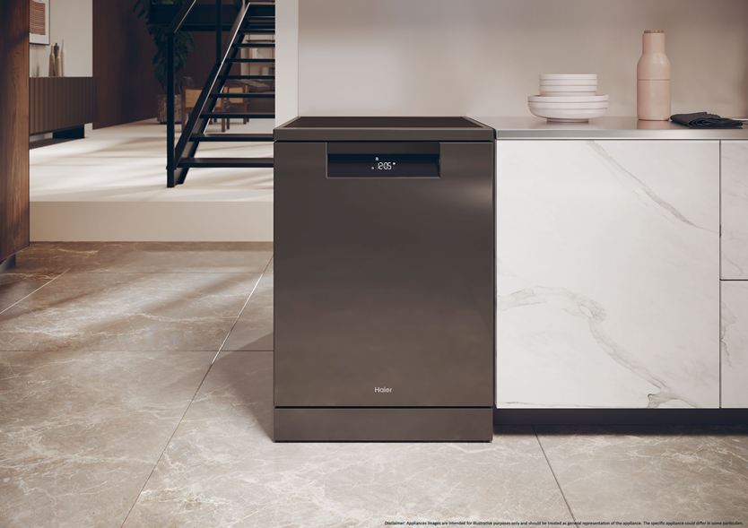 Masina de spalat vase Haier XF 4A4M4PA, 14 seturi, 10 programe, Clasa A, Motor Inverter, WiFi, 10 programe, H-Spray Arm, Flex Zone, Part Light, Powerwash, Automatic Open Door, 60 cm, Antracit