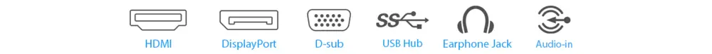 O serie de optiuni de conectivitate care includ HDMI, DisplayPort, D-sub si hub USB, astfel incat se conecteaza cu usurinta la o mare varietate de PC-uri, laptopuri, console, cutii media, tastaturi si soareci. De asemenea, dispune de porturi de trecere pentru intrarile line in si jack pentru casti, punand conexiunile audio in mod convenabil.