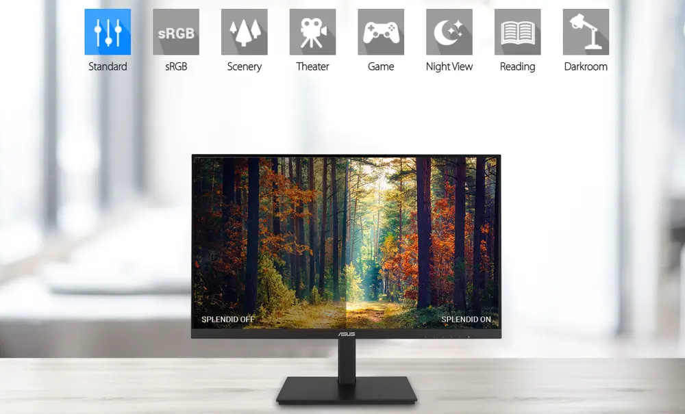 Tehnologia ASUS Splendid™ care optimizeaza videoclipurile si imaginile prin imbunatatirea luminozitatii, contrastului si claritatii culorilor. Aceasta dispune de o mare varietate de moduri, inclusiv Reading, Darkroom, Scenery, Standard, Theater, sRGB, Game si Night View.