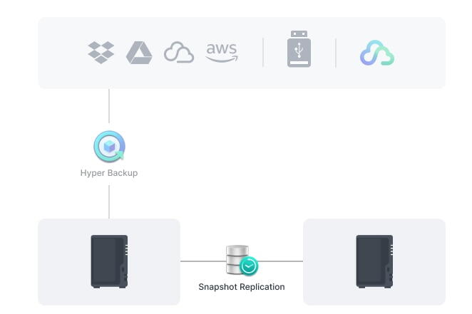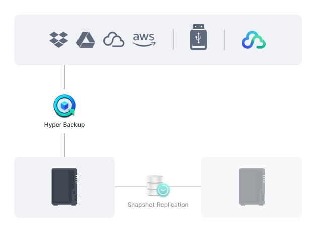 | Efectuati copii de rezerva complete ale sistemului Synology Protejati toate datele, aplicatiile si configuratiile de pe sistemele Synology cu backup-uri programate complete catre servere locale si la distanta, unitati externe sau destinatii de stocare in cloud, inclusiv Synology C2 Storage. | ![]() |
