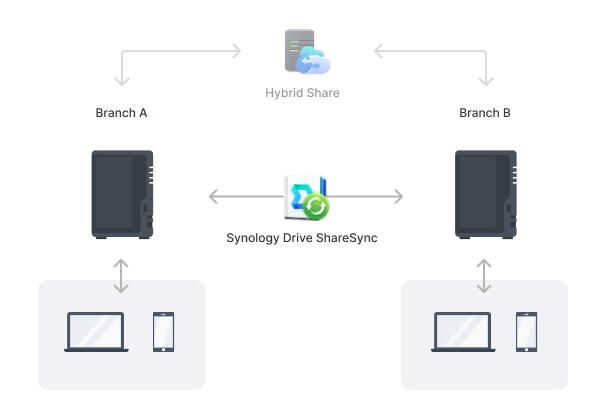 | Sincronizarea datelor intre site-uri Lucrati impreuna cu o incetinire minima folosind sincronizarea fisierelor de la un site la altul, care poate fi configurata pentru a sincroniza automat fisiere sau foldere individuale intre dispozitivele Synology, permitand accesul perfect la fisiere de pe dispozitivele locale. | ![]() |
