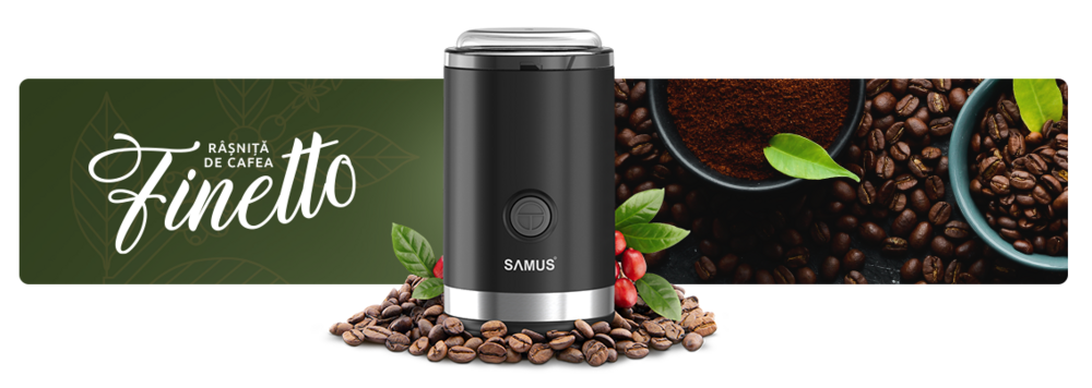 Macina cafea sau condimentele dorite in cel mai scurt timp cu ajutorului rasnitei Samus Finetto. Avand o putere de 150 W, aceasta iti ofera eficienta maxima cu efort minim.