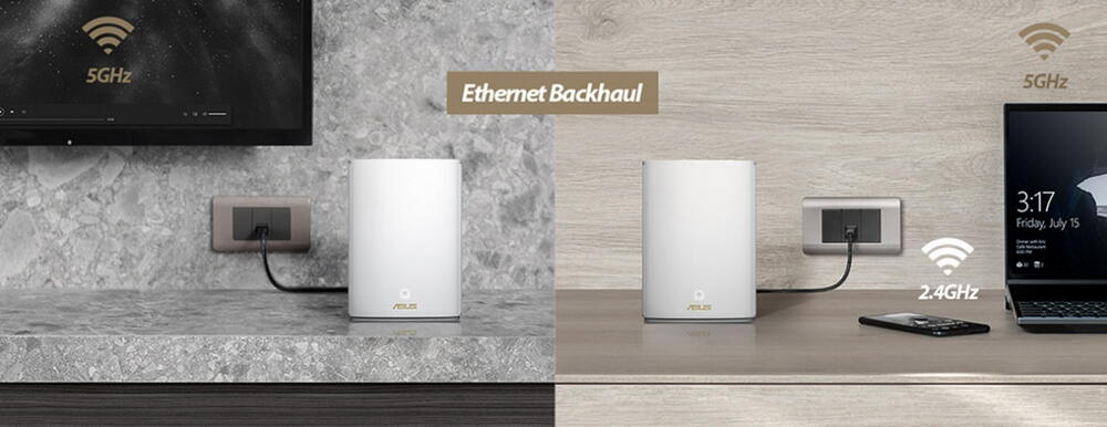 ASUS ZenWiFi AX Hybrid va ofera trei optiuni alternative de backhaul: powerline, Ethernet si WiFi. Routerul alege in mod inteligent cea mai fiabila metoda pentru tine, pe baza calitatii conexiunii. Daca preferati, puteti, de asemenea, sa alegeti manual tipul de conexiune backhaul.