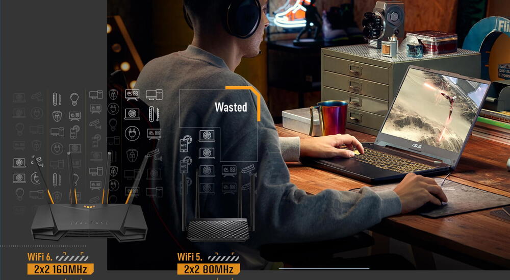 TUF Gaming AX3000 V2 este conceput pentru a va oferi conexiuni wireless si prin cablu stabile si rapide in medii cu densitate de dispozitive. Este un router de care beneficiaza toate dispozitivele tale, de la laptopuri, smartphone-uri si console de jocuri pana la toate dispozitivele IoT din casa ta.