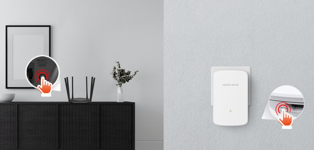 Apasa butonul WPS de pe routerul tau si butonul WPS de pe extender pentru a mari aria de acoperire WiFi in cateva secunde.