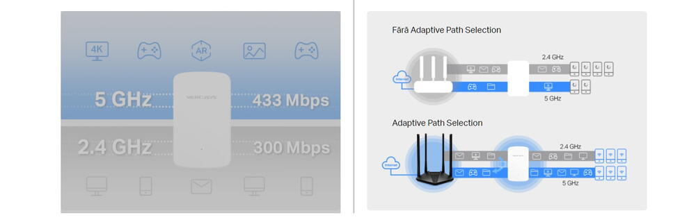 WiFi Dual Band AC750 — Tine-ti toata locuinta conectata cu o extensie WiFi puternica la o viteza combinata de pana la 750 Mbps.