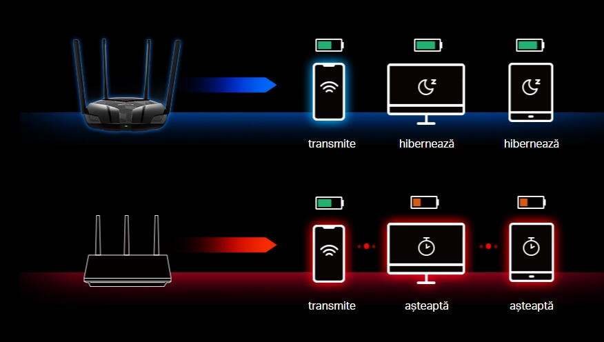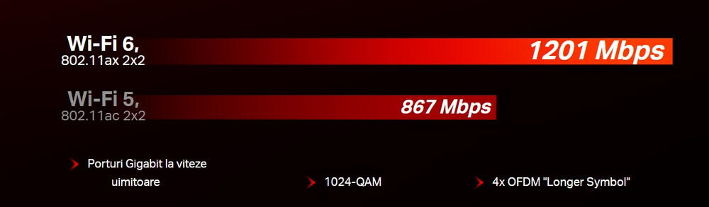 | Actualizeaza reteaua ta cu Wi-Fi 6 Cel mai recent standard Wi-Fi 6 pune in aplicare o tehnologie avansata, conceputa pentru a oferi conexiuni stabile si simultane. Extinde gama Wi-Fi si mentine transmisiile de date rapide si neintrerupte, satisfacand cererea pentru o experienta wireless de inalta performanta. | ![]() |