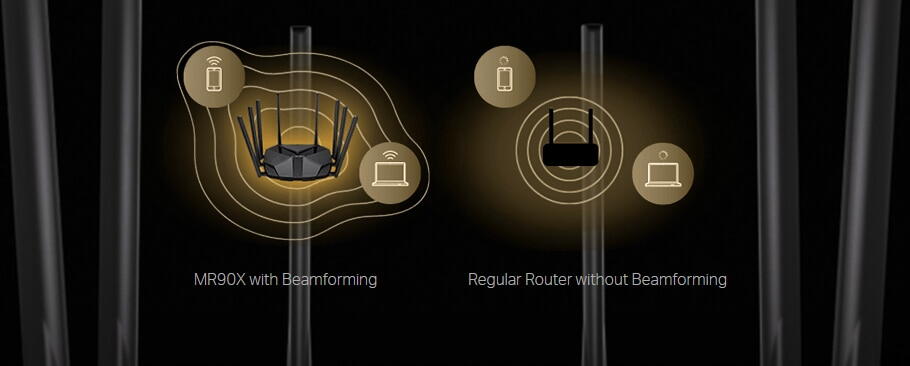 Streaming-ul sau jocurile pe mai multe dispozitive ofera mai multa distractie fara a reduce performanta. MR90X suporta OFDMA si 4×4 MU-MIMO pentru a va alimenta WiFi-ul, permitand mai multor clienti sa transmita in acelasi timp. Acest lucru ofera o capacitate si o eficienta de retea de 4× mai mare in mediile cu trafic dens.