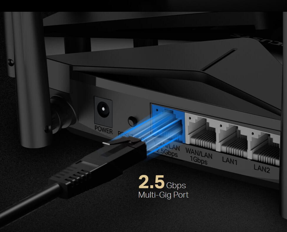 Un port de 2,5 Gbps si un port de 1 Gbps permit utilizarea deplina a vitezelor gigabit de la ISP-ul local. Depasiti blocajul de 1G si conduceti-va dispozitivele la performante maxime. Suportul WAN/LAN va ofera o flexibilitate remarcabila pentru a adapta ambele porturi la nevoile retelei dvs.