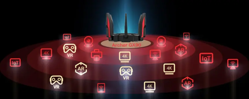 Archer GX90 ofera 3 benzi distincte. Viteza combinata a acestora atinge pana la 6579 Mbps. O banda de gaming complet echipata, are in componenta sa, tehnologiile 4T4R si HE160. Acestea doua, ofera viteze de pana la 4804 Mbps, pentru toate platformele de jocuri. Viteza maxima de functionare este de 4804 Mbps si previne interferentele cu celelalte tipuri de dispozitive.