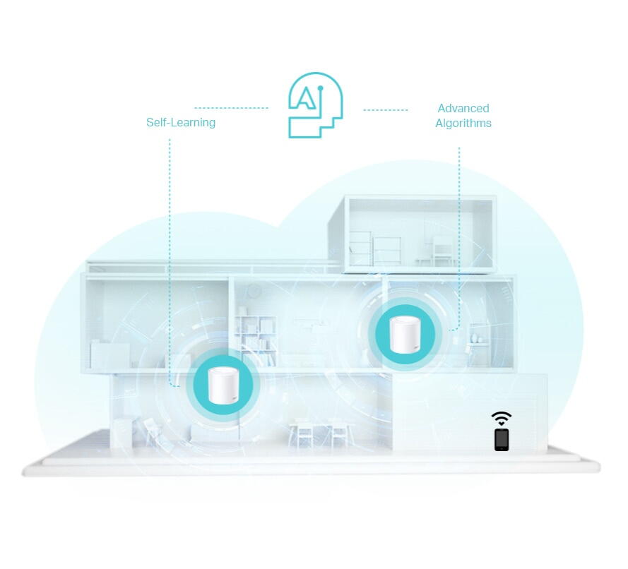 | Plasa bazata pe inteligenta artificiala: Invatare continua, optimizare constanta Inarmat cu AI-Driven Mesh, Deco X50 ofera un WiFi inteligent care va urmareste oriunde va aflati, fara intreruperi. Acesta invata automat mediul de retea, calitatea clientilor si comportamentele utilizatorilor. Algoritmi sofisticati iau in considerare diversi factori, astfel incat Deco X50 ofera un WiFi mesh ideal, unic pentru locuinta dvs. Plimbati-va prin casa si bucurati-va de streaming fara intreruperi, la cele mai mari viteze posibile. | ![]() |