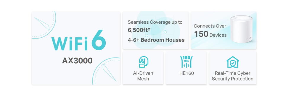 Dotat cu tehnologia WiFi 6, Deco este conceput pentru a oferi o crestere uriasa a acoperirii, vitezei si capacitatii totale. Treci la cea mai recenta retea WiFi mesh pentru a te bucura de viitoarea retea care se incarca mai repede si se conecteaza mai mult.