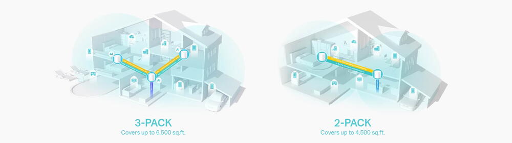 Cu semnale mai clare si mai puternice, imbunatatite de BSS Color si Beamforming, Deco X50 sporeste acoperirea mai larga a intregii locuinte cu WiFi, cu performante excelente. Conexiunile wireless si backhaul Ethernet optional lucreaza impreuna pentru a conecta unitatile Deco, oferind viteze de retea si mai rapide si o acoperire cu adevarat continua. Doriti mai multa acoperire? Pur si simplu adaugati un alt Deco.