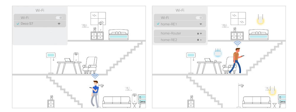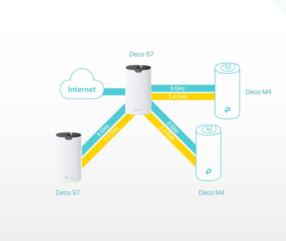 Deco S7 poate forma o retea Wi-Fi mesh cu oricare alt model din gama Deco. Poti extinde reteaua oricand, doar adauga inca o unitate Deco.