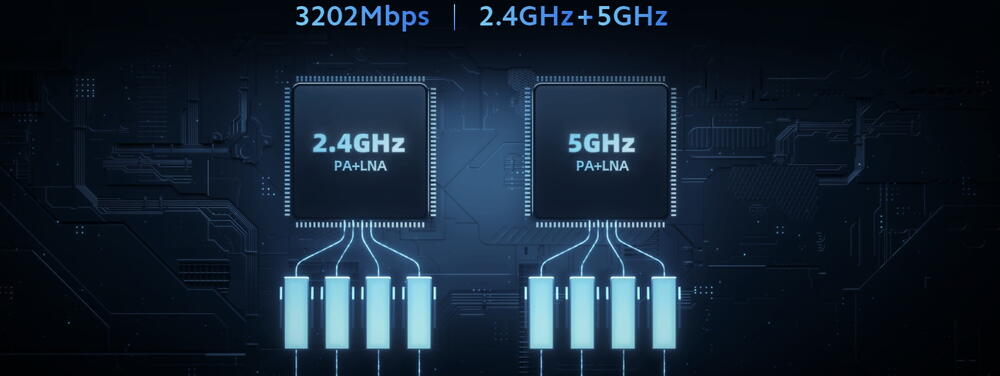 Xiaomi Router AX3200 ofera atat 2,4 GHz, cat si 5 GHz. Cele doua benzi nu interfereaza una cu cealalta si au o viteza wireless teoretica combinata de maxim 3202Mbps. Bucurati-va de acces ultra-rapid la internet, acoperire stabila a semnalului, utilizare de mare viteza, videoclipuri HD fara intreruperi si jocuri online la scara larga.
