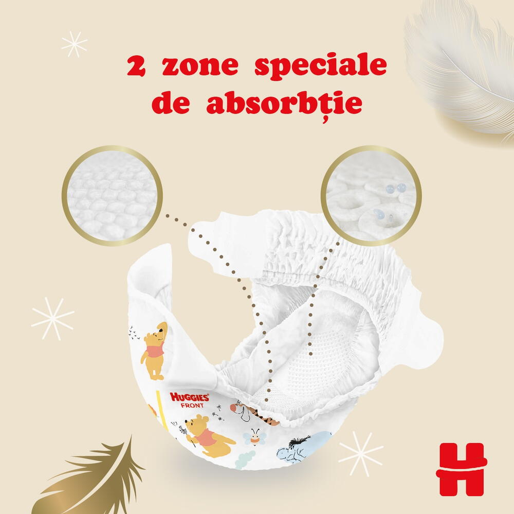 Mai mult decat atat, noile scutecele Huggies® Extra Care imbunatatite au devenit si mai moi* acum si de asemenea, au 2 zone speciale de absorbtie: