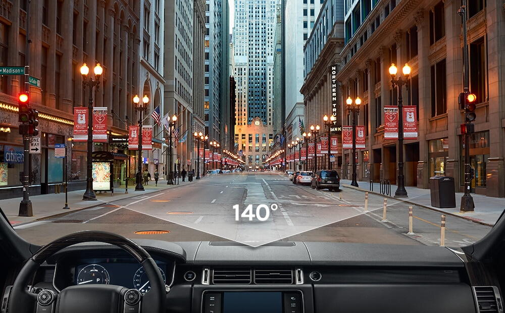 Cu un camp vizual de 140°, Dash Cam M300 va asigura siguranta acoperind cele trei benzi de trafic.
